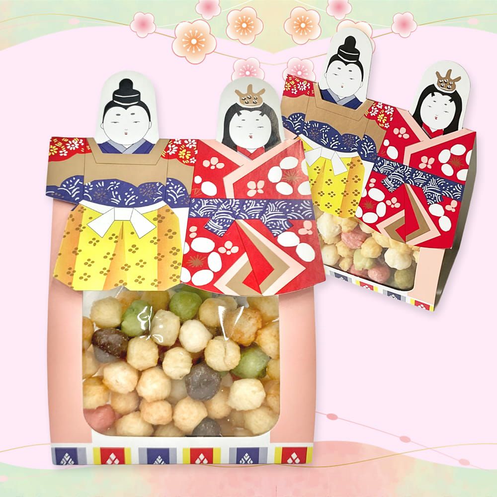 最高級砂糖「和三盆」を用いた五色あられ、桜をかたどったしょう油えびあられなど、人気の京のあられ・おせんべいをかわいい和柄缶にお詰め致しました。