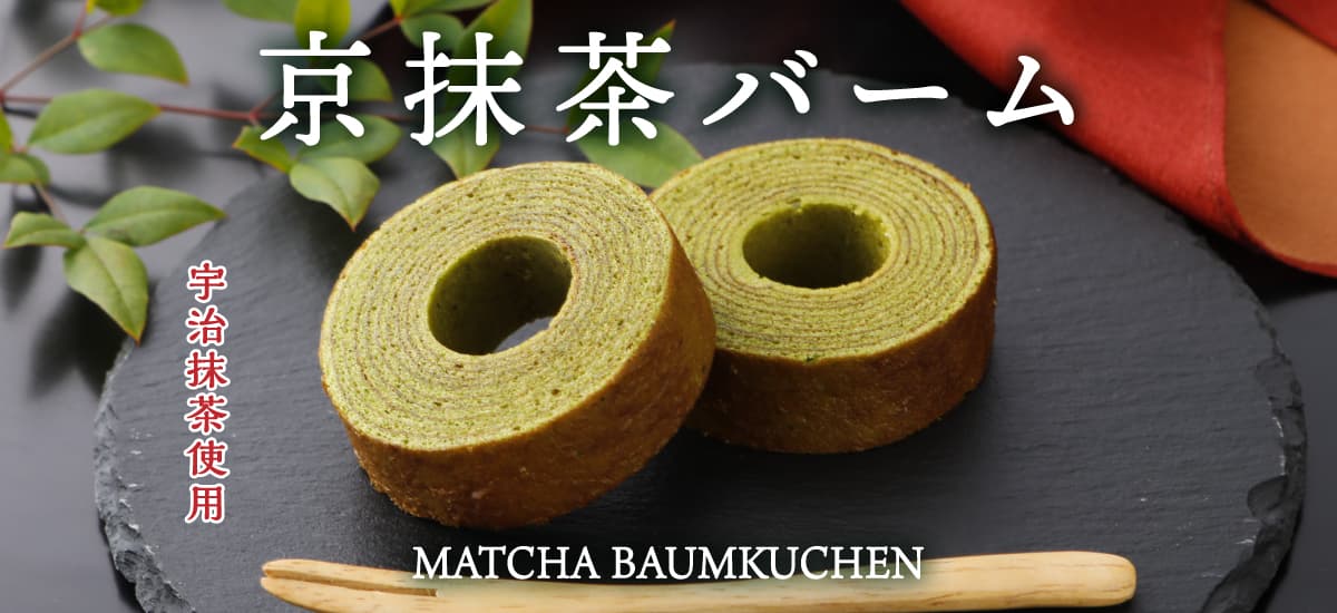 宇治抹茶と国産小麦を使ったしっとり食感のバームクーヘン。個包装で食べやすく、贈り物にも最適。ご自宅用からおもてなしまで幅広いシーンで喜ばれる抹茶スイーツです。
