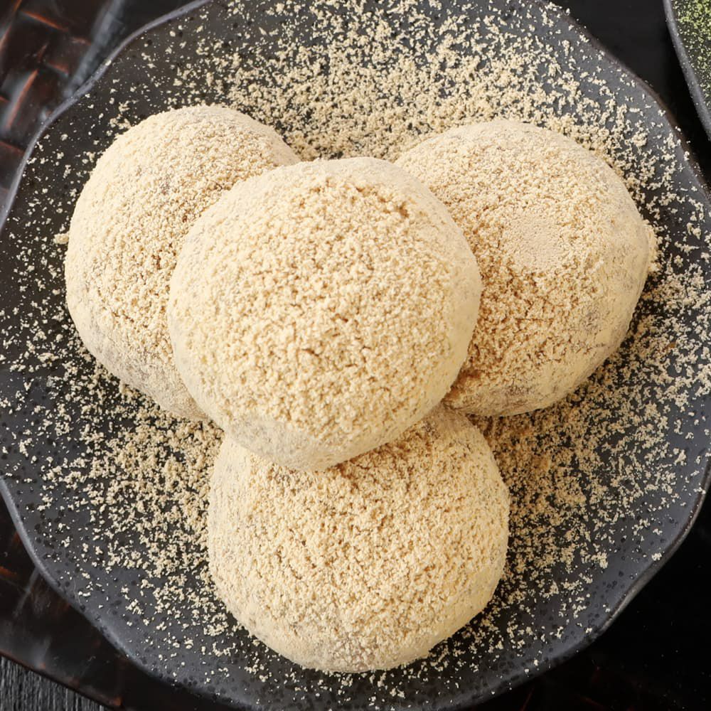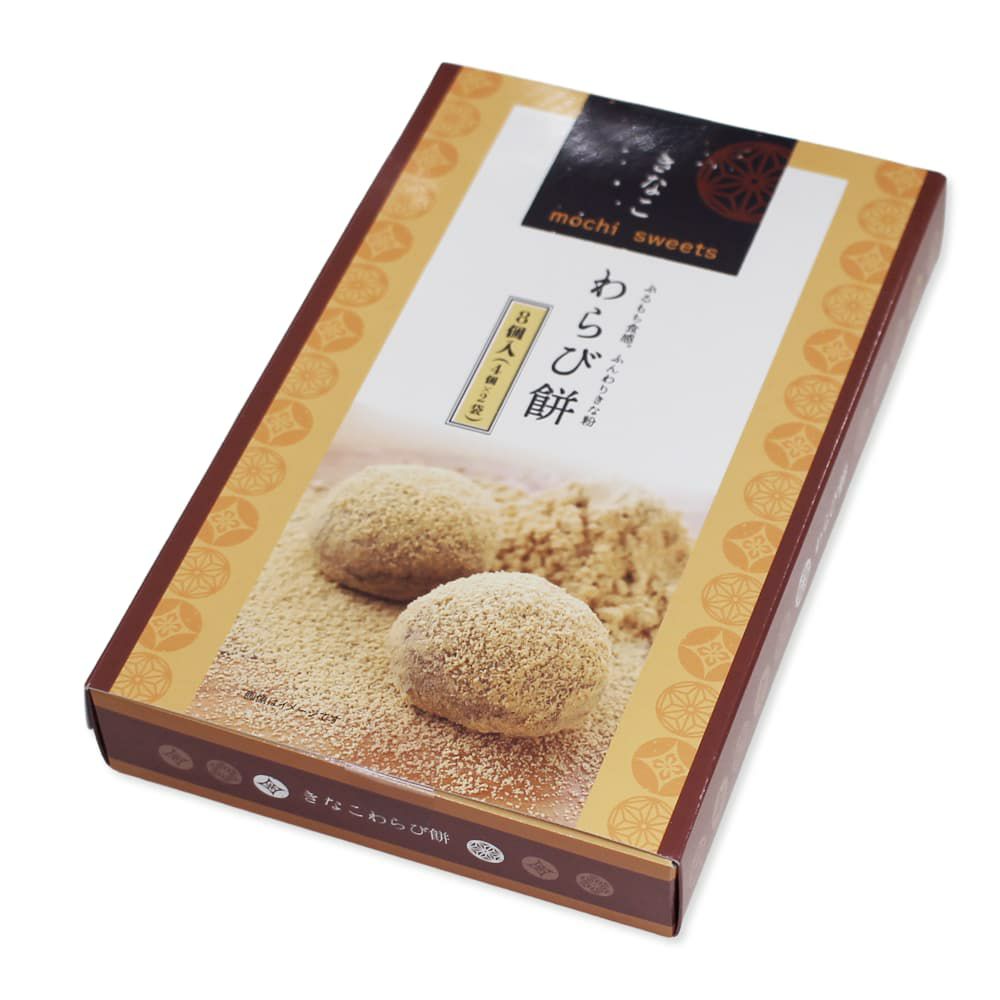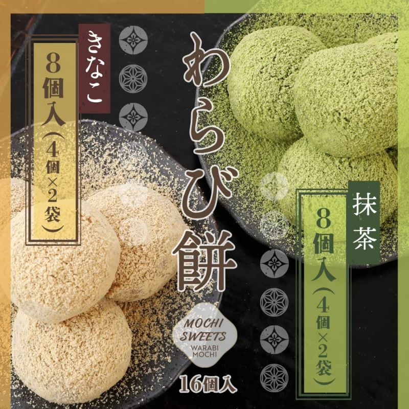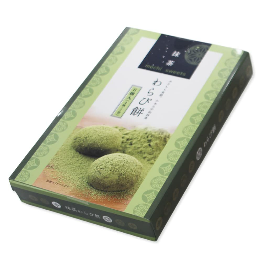 ぷるもち食感のわらび餅に香ばしいきなこと薫り高い宇治抹茶をたっぷりと練り込み、まぶして仕上げました