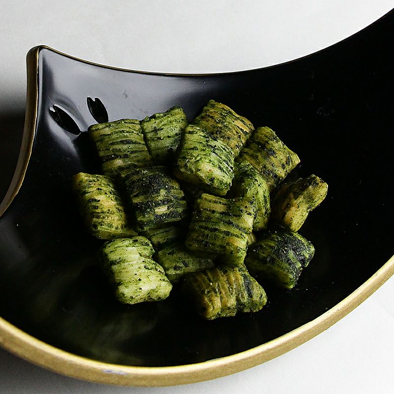 フレッシュなバジルの味わいと絶妙な塩加減の中に、あられの旨味と甘みを感じる和洋織り成す新感覚のあられです。