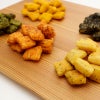 イカスミ・チーズ・トマト・バジル・ガーリック・・・。これまであられの世界ではなかなか用いられたことのない食材を使用した、香りも味も十分に楽しめる和洋織り成すあられです。ワインや洋酒・ビールはもちろん、珈琲や紅茶、緑茶などのお茶うけとしてもお楽しみいただけますので、ぜひ一度ご賞味下さいませ。(味付けは、濃いめになっております)。ワインに合わせるチーズのようなアイテムとして通常のあられとも違う和洋融合の食感と味わいをお楽しみくださいませ。