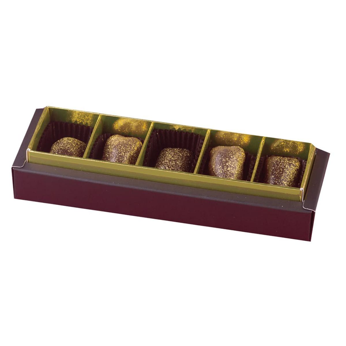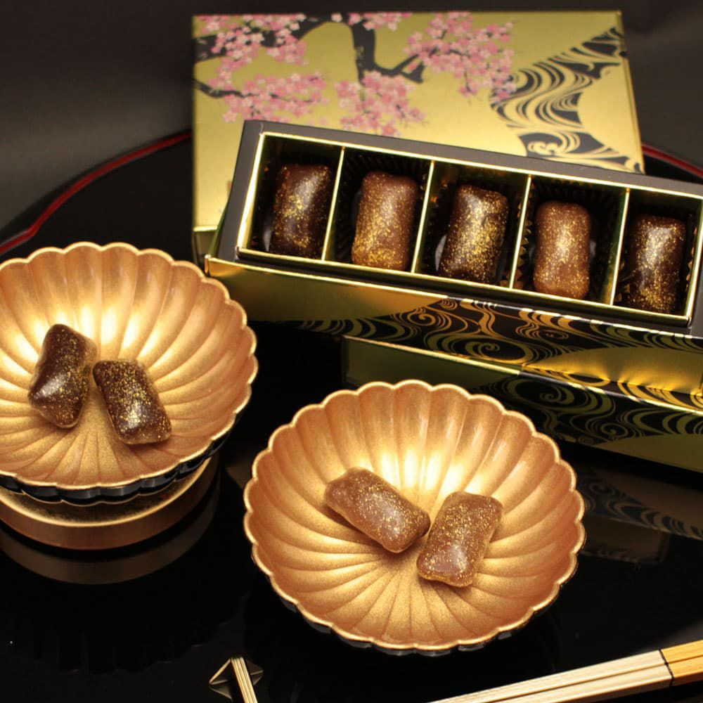 菓匠宗禅「金襴」は、親子二代に受け継がれたコーヒーあられを、風味豊かなベルギー産最高級クーベルチュールチョコレートで包み込み、金粉をあしらいました。