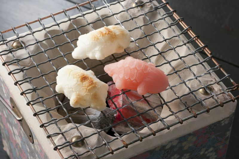 紅白亀甲餅を焼く段階で、職人の出番はありません。四方八方にふくらむのが餅、それが「あたりまえ」。その「あたりまえ」を覆し、ご家庭で簡単に亀の形に「ぷくっ」と膨らむように細工した高度な上技(じょうわざ)の技術が、一枚一枚に込められています。