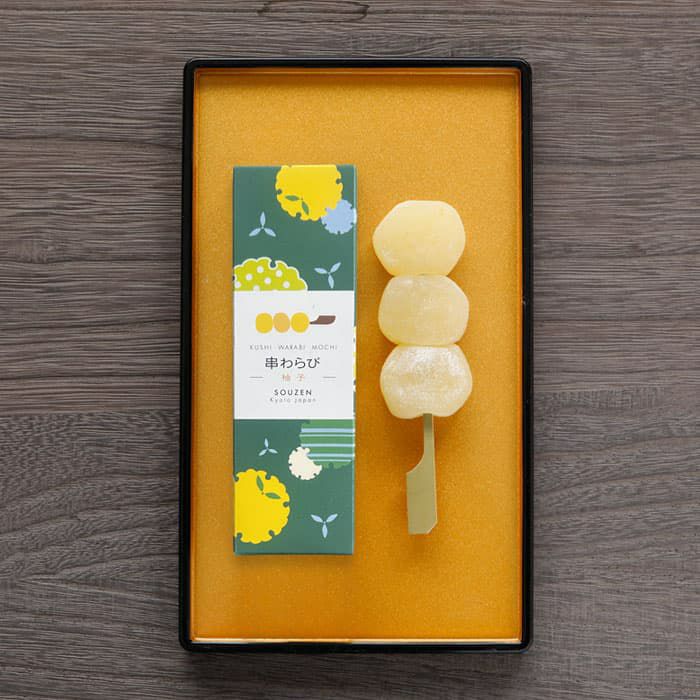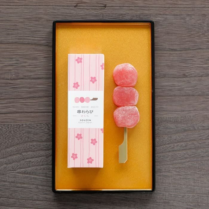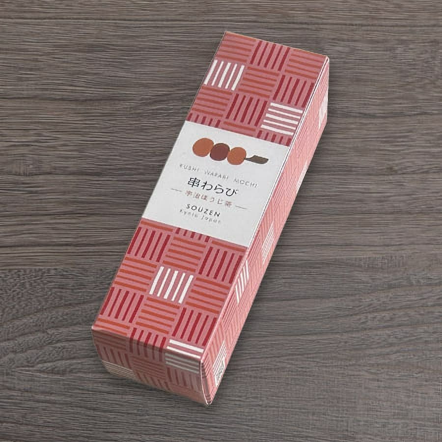 お取りよせや贈り物に。日持ちする本物のわらび餅として「串わらび」が京都で大評判!常識をくつがえす発想の「わらび餅」です。
