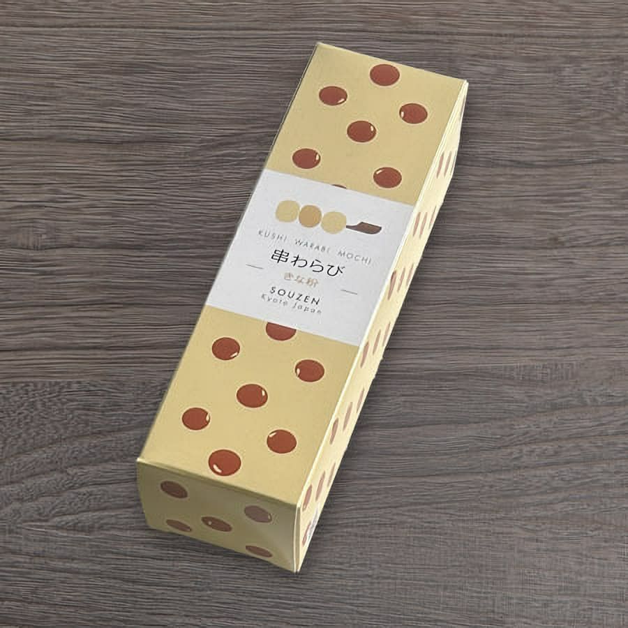 京都にお越しの際はぜひ,、おちょぼ口の舞妓はんでもお召し上がりいただける一口サイズのわらび餅「串わらび」をおみやげにお持ち帰りください