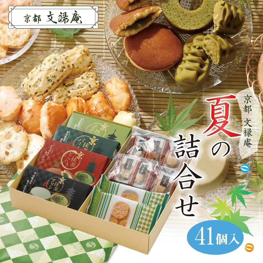 京の抹茶菓子「どらやき」「バーム」「プリン」と文禄庵の人気あられの数々をたっぷり合わせた文禄庵ならではのセットです。和洋のお菓子がバラエティにあふれたボリュームたっぷりの詰合せは、お子様からご年配の方までどなた様にもお喜びいただけます。