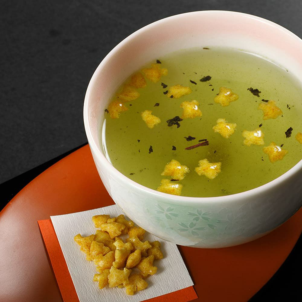 日本人が古くから楽しんできた「お茶」には様々な種類があり、茶葉を使わない「茶外茶」も豊かな文化と共に育まれてきました。中でも「昆布茶」はお客様をお迎えする際や慶事のお祝い茶としてどの家庭でも親しまれてきた「風味茶」です。そこに「梅」や「あられ」「抹茶」などを加えた「梅昆布茶」は特におめでたい席でのおもてなし茶としてやお正月の福茶として京都、関西地方を中心に愛飲されています。