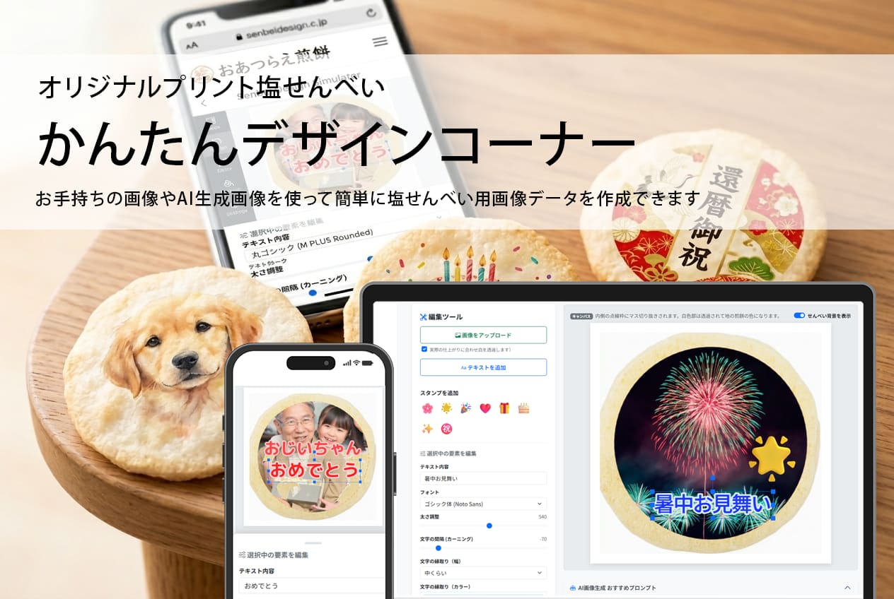 キャンバス 内側の点線枠にマス切り抜きされます。白色部は透過されて地の煎餅の色になります。