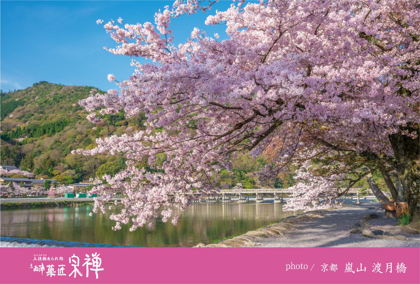 嵯峨野と嵐山を隔てて流れる桂川に架かる橋。承和年間(834 - 848)に僧道昌によって架橋したのが最初とされており、現在の位置には後年に角倉了以が架けたとされています。