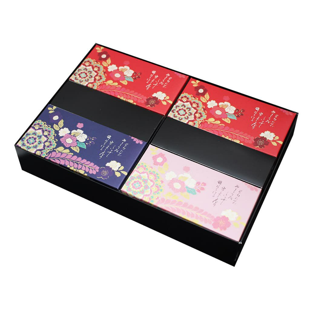 職場でいただきました 包装や箱などが京都らしい華やかな和のデザインで好評でした おかきも懐かしい味がしました おかきの種類も縁起物で形作られていてご進物などに重宝しそうです